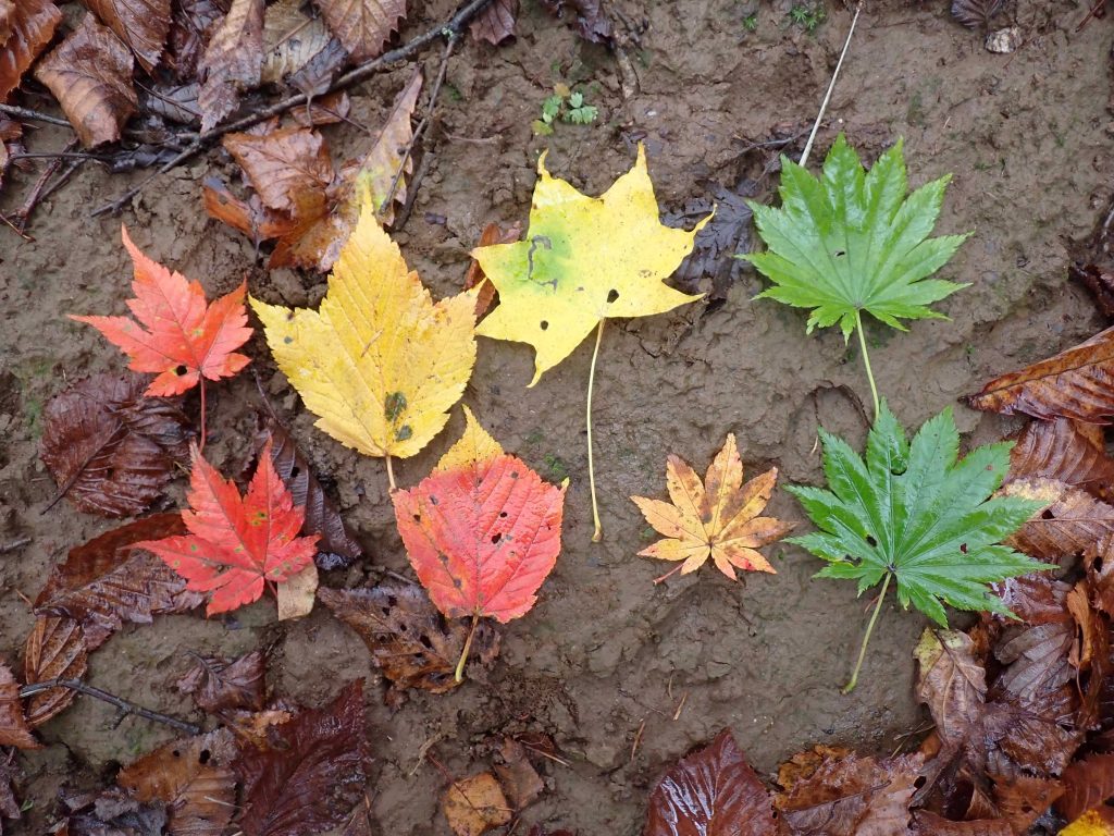 10月25日(土) 秋のトレッキングが開催されました。天気予報は曇りだったため予定どおり実施しましたが、大峠に到着すると霧雨が降っており、雨具を着用しての登山となりました。紅葉は始まったばかり。今回は「紅葉を楽しむ」がテーマだったので、出発前に紅葉のしくみやカエデの種類・見分け方などについて説明を行ってから出発しました。